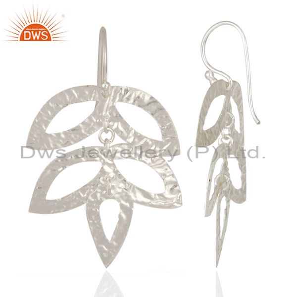 Tree Leaf Handmade 925 Sterling Silver Silver Plated Texture Earrings Jewelry