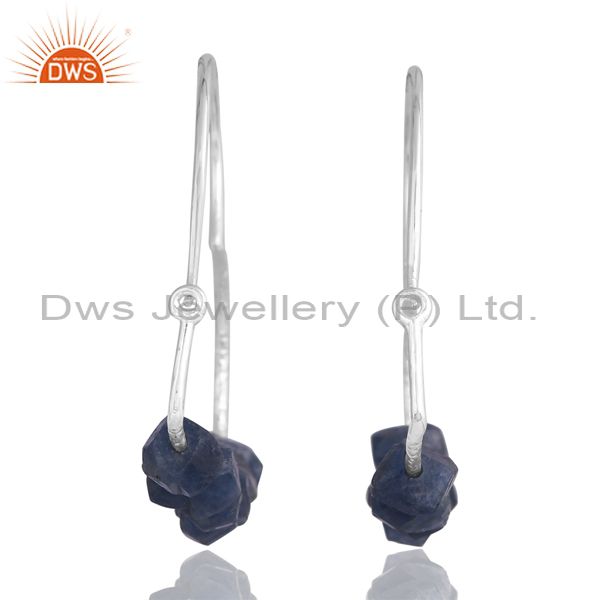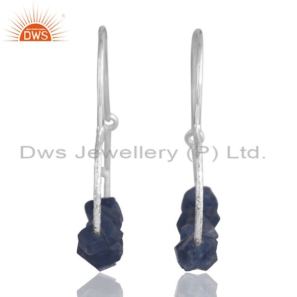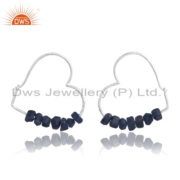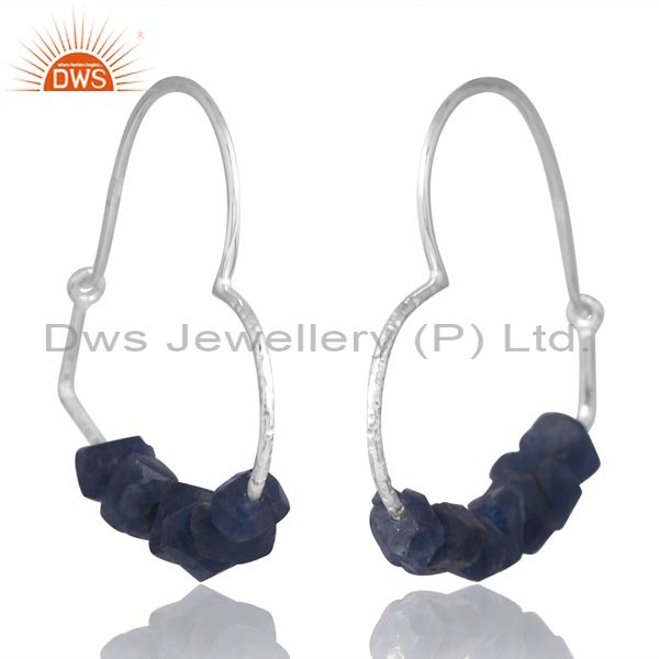 Trendy Silver White Hoops With Hanging Blue Sapphire Stone