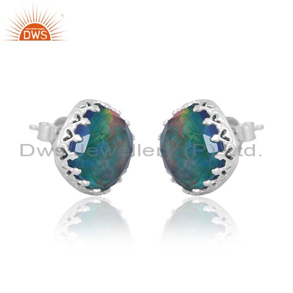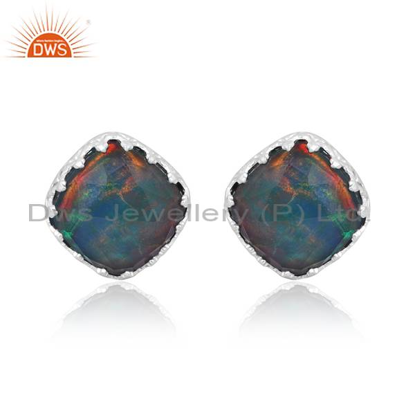 Trendy Studs Earrings With Unshape Aurora Opal Red Green