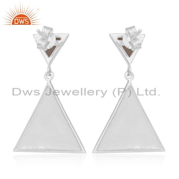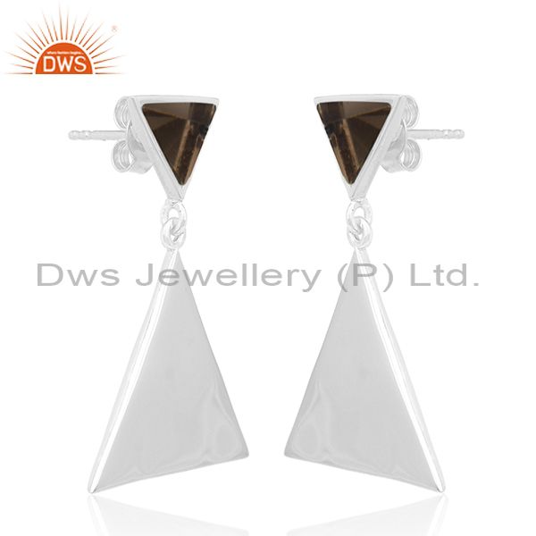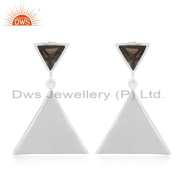 Triangle Design 925 Silver Smoky Quartz Gemstone Earrings Manufacturer India