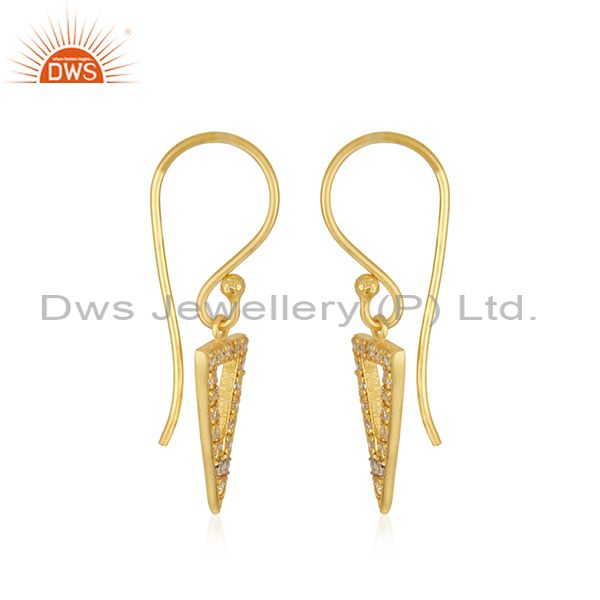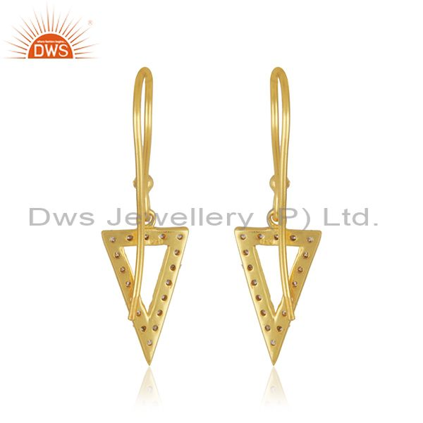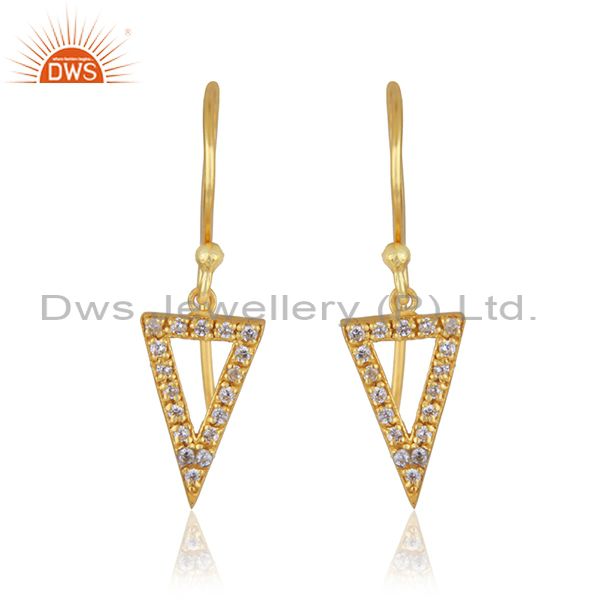 Triangle Design 925 Silver Yellow Gold Plated White Zircon Drop Earring Supplier