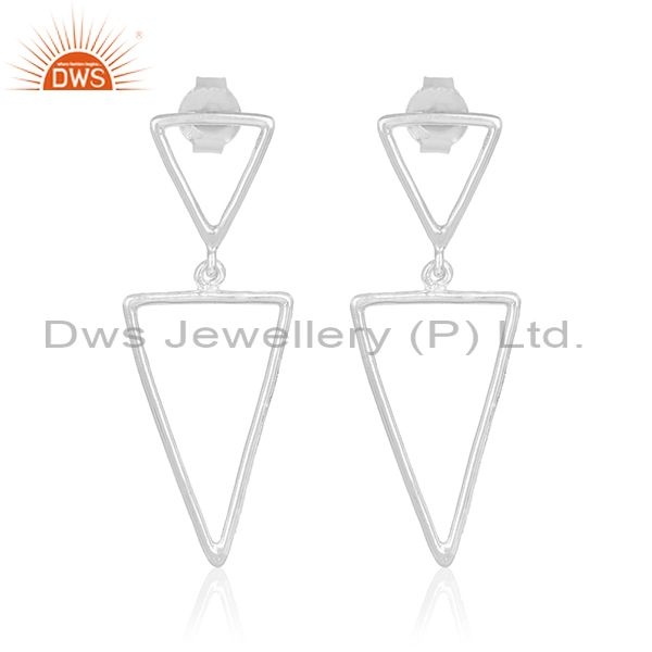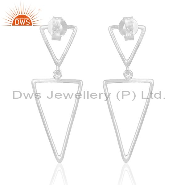 Triangle Shape 925 Sterling Plain Silver Designer Girls Earring Jewelry Supplier