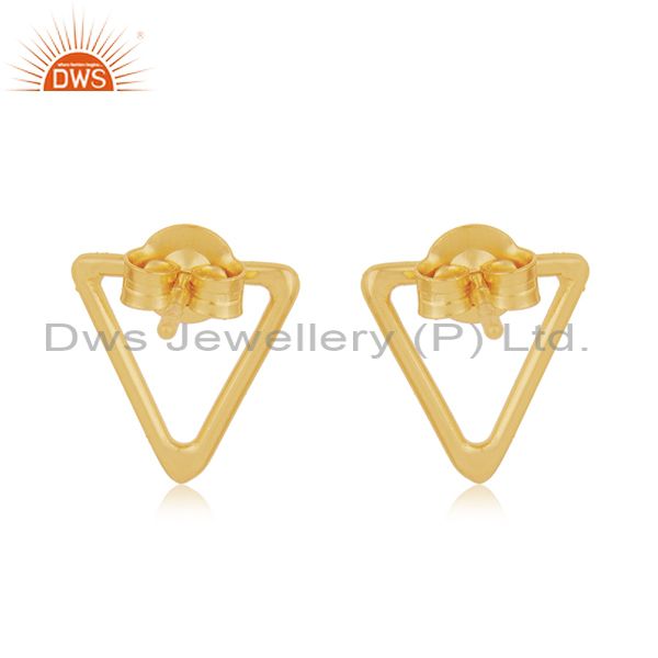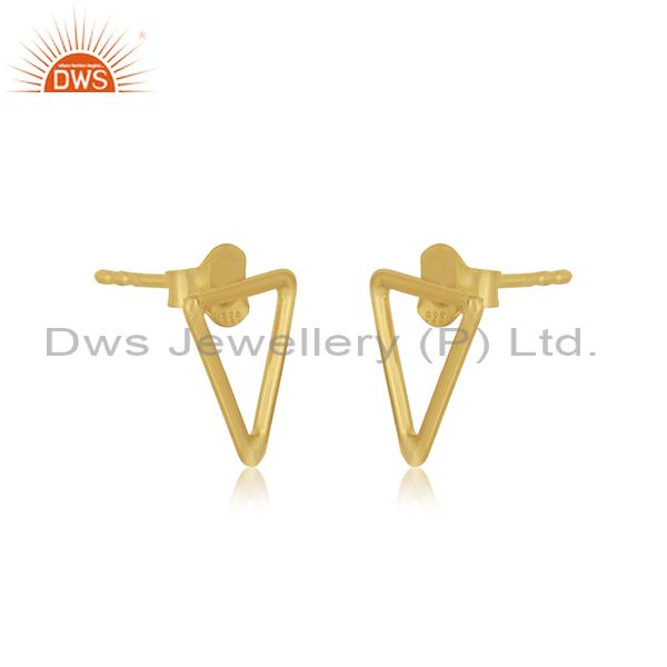 Triangle Shape 925 Sterling Silver Gold Plated Stud Earrings Manufacturer Jaipur
