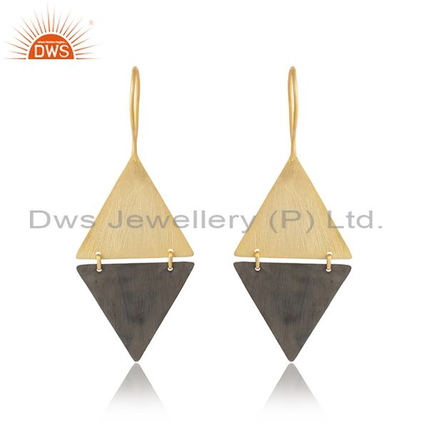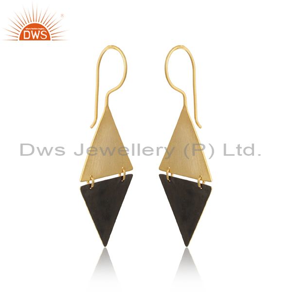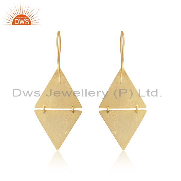 Triangle Two Tone Plated 925 Sterling Plain Silver Earrings Jewelry