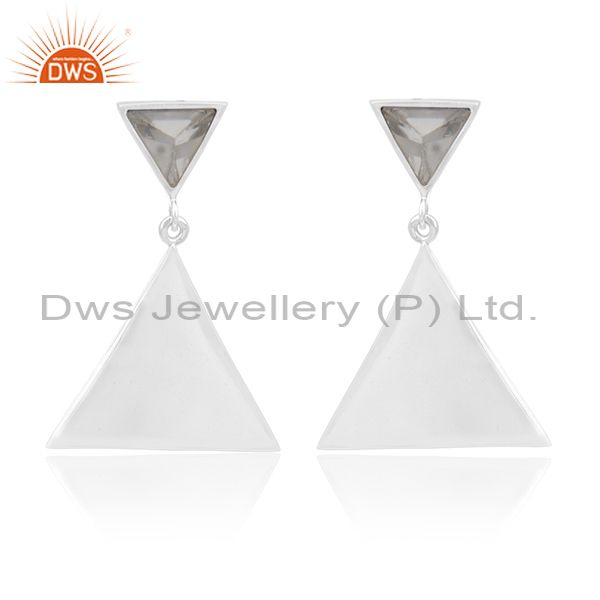 Trianle Shape 92.5 Silver Custom Design Gemstone Earring Manufacturer From India