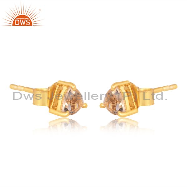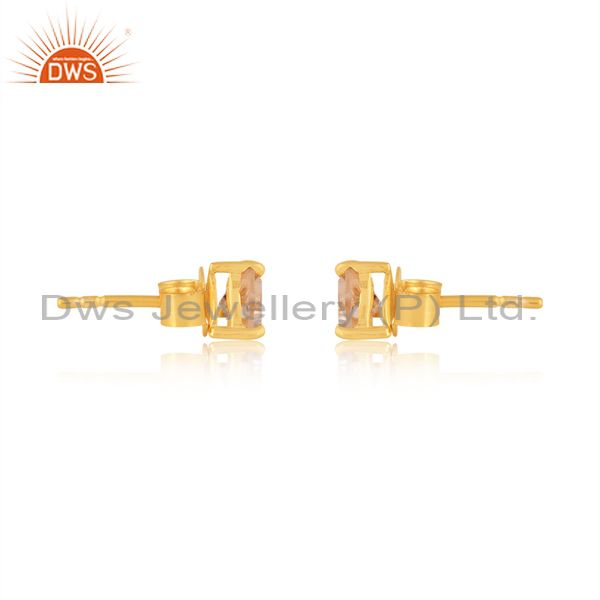 Trillion Cut Citrine Set Gold On Silver Statement Earrings