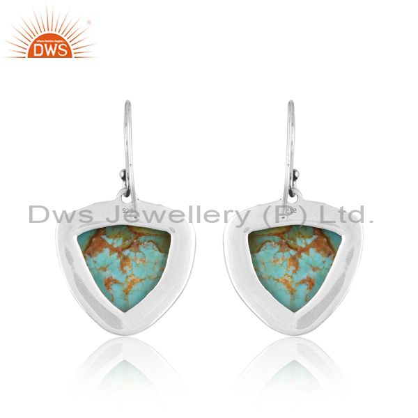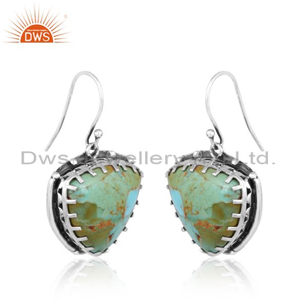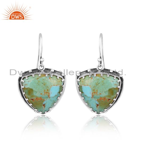 Trillion Cut Kingman Turquoise Set Oxidized Silver Earrings
