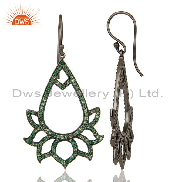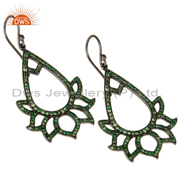 Tsavourite Lotus Dangler Earring Oxidized Sterling Silver Earring