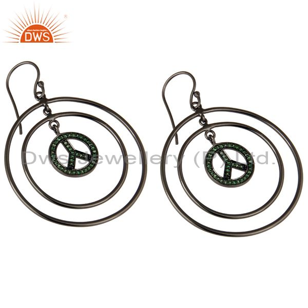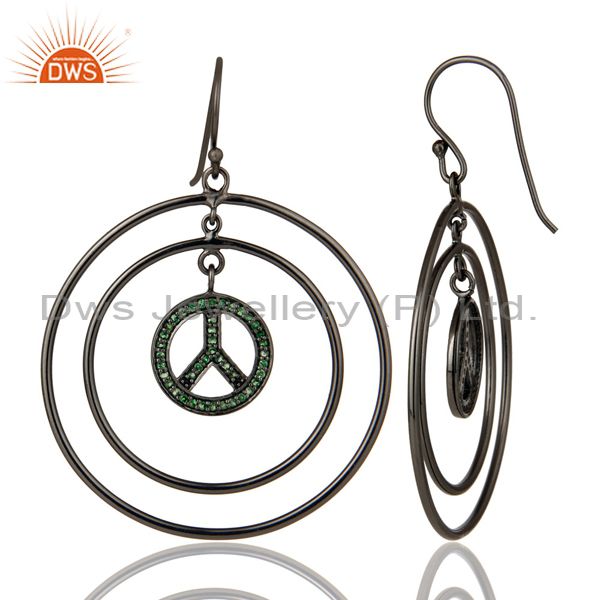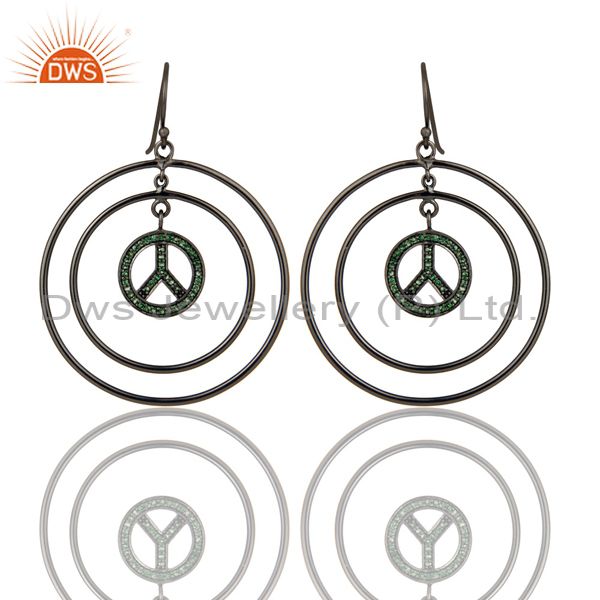 Tsavourite Oxidized Sterling Silver Pave Setting Peace Circle Dangle Earrings