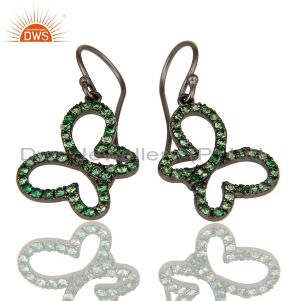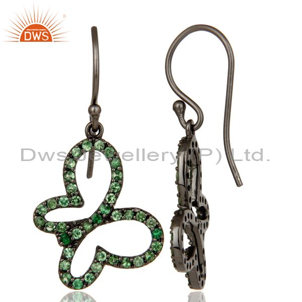 Tsavourite Stone Black Oxidized Sterling Silver Butterfly Earring