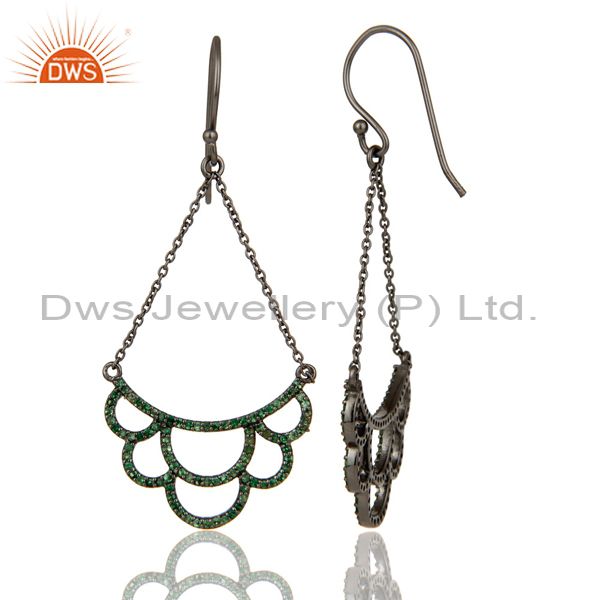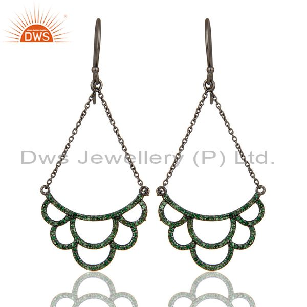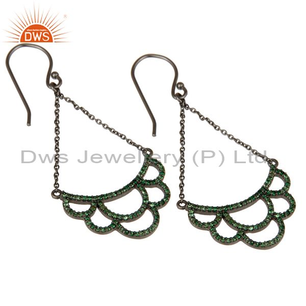 Tsavourite Stone Lotus Dangler Earring Oxidized Sterling Silver Earring