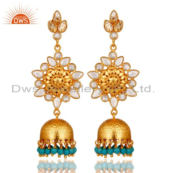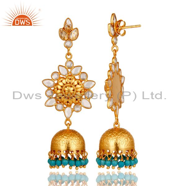 Turquoise and CZ Sterling Silver 18K Gold Plated Jhumka Earring