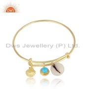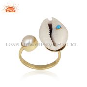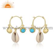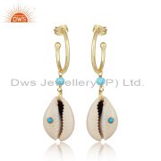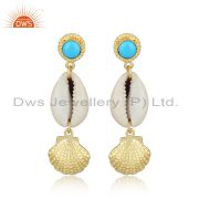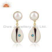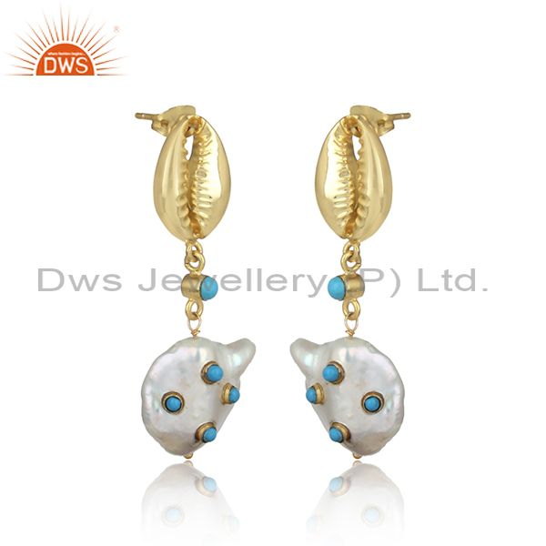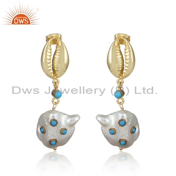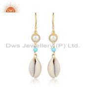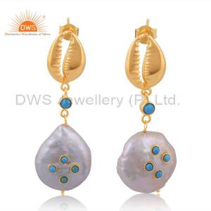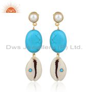 Turquoise And Fresh Water Pearl Brass Drop Earrings