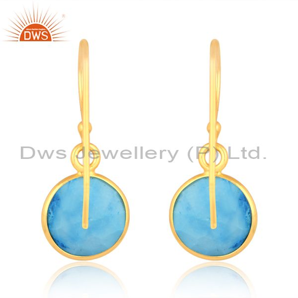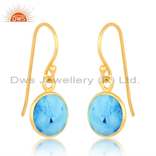 Turquoise Matrix Chinese Gem On 18K Gold Silver Earring