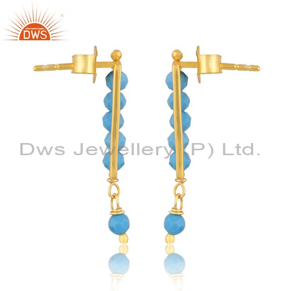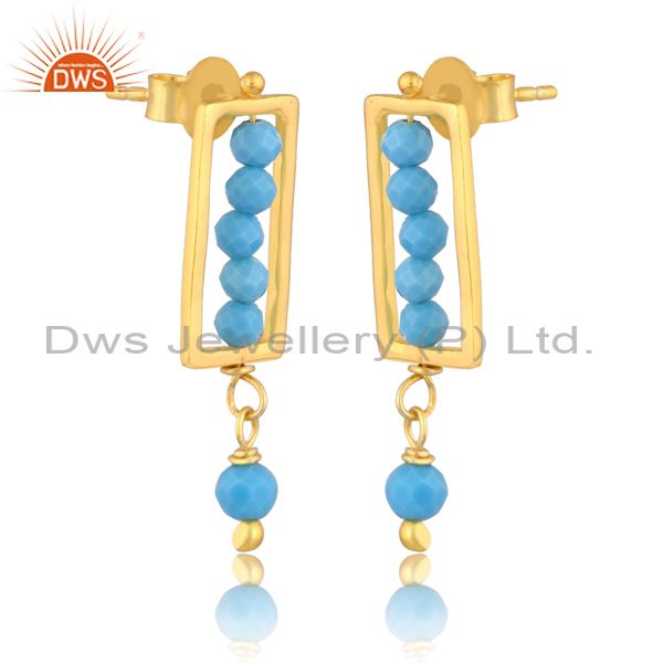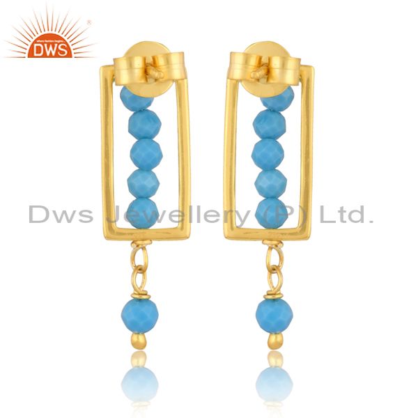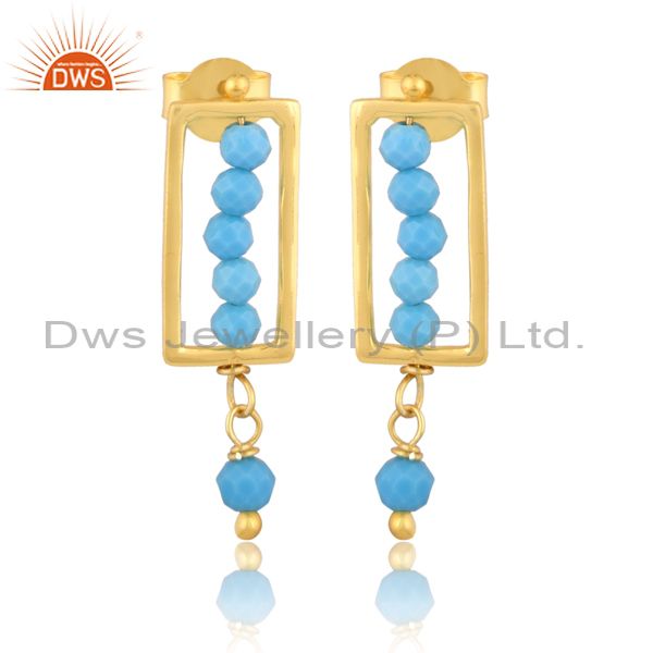 Turquoise Set Gold On Silver Rectangular Dangle Earrings