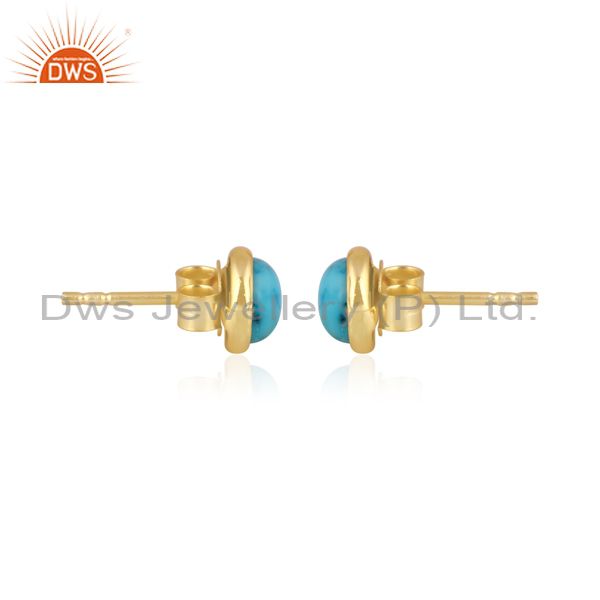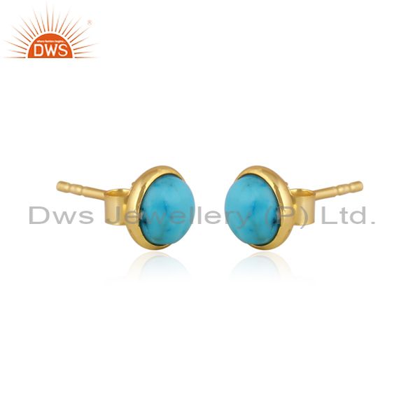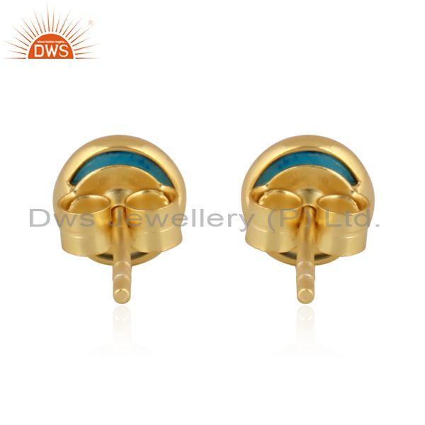 Turquoise Set Gold On Sterling Silver Round Classic Earrings