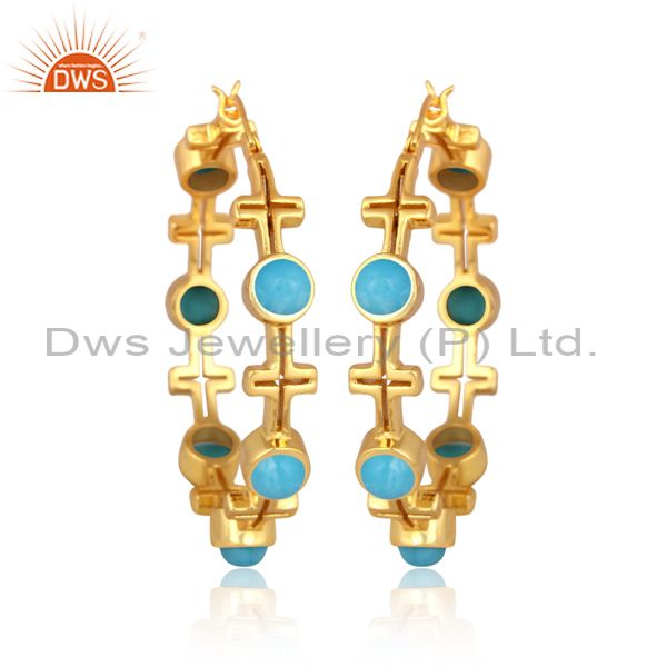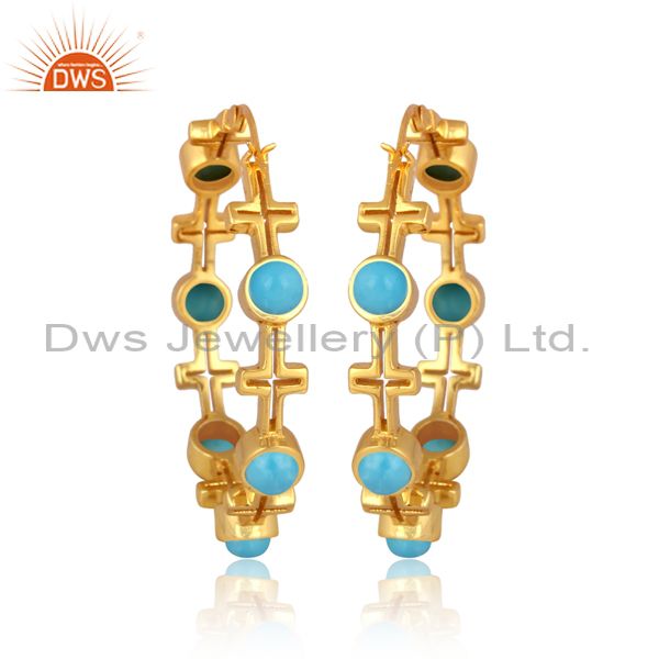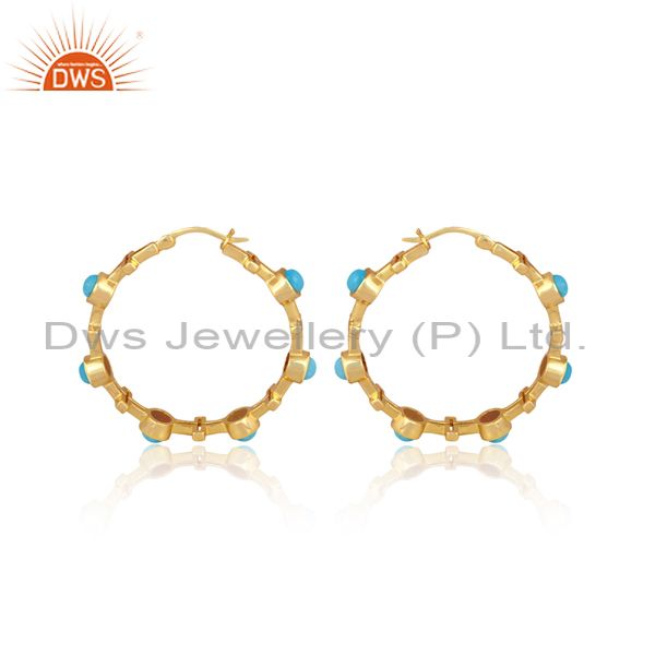 Turquoise Set Gold On Sterling Silver Round Hoop Earrings