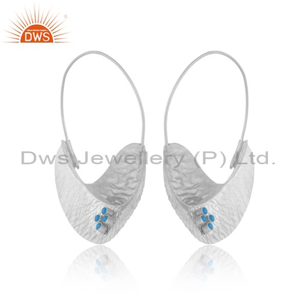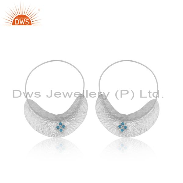Turquoise Set Handhammered Fine Brass Basket Hoop Earrings