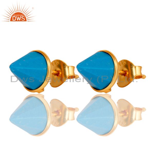 Turquoise Spike 18K Gold Plated Sterling Silver Stud For Her