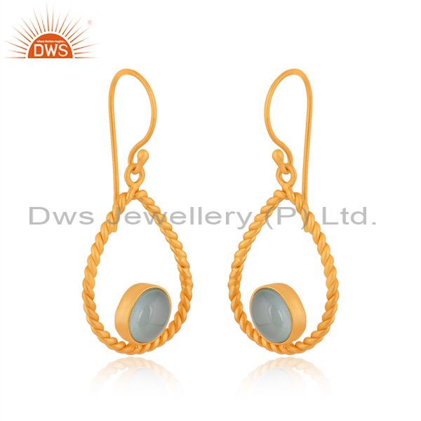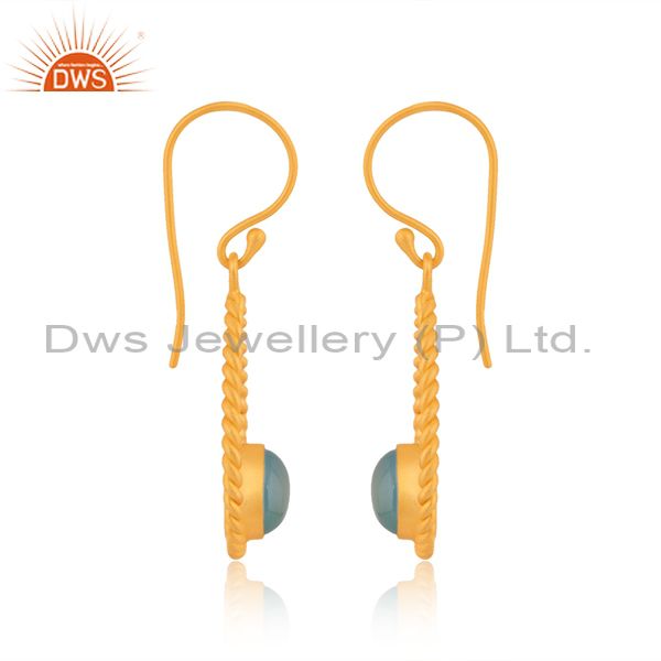 Twisted Rope Design Gold Over Silver Aqua Chalcedony Earring