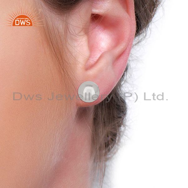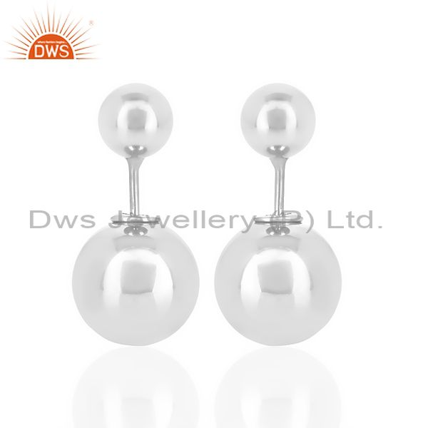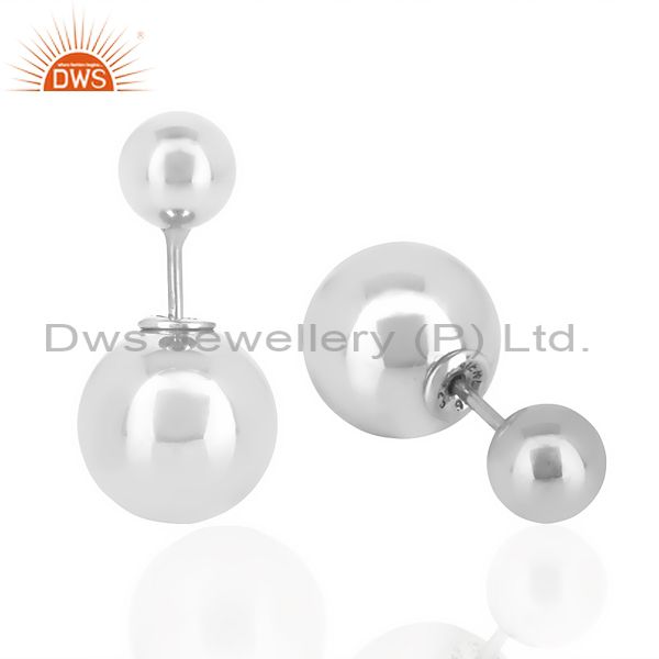 Two Ball Stud,Two Way Stud Post White Rhodium Trendy Sterling Silver Earring