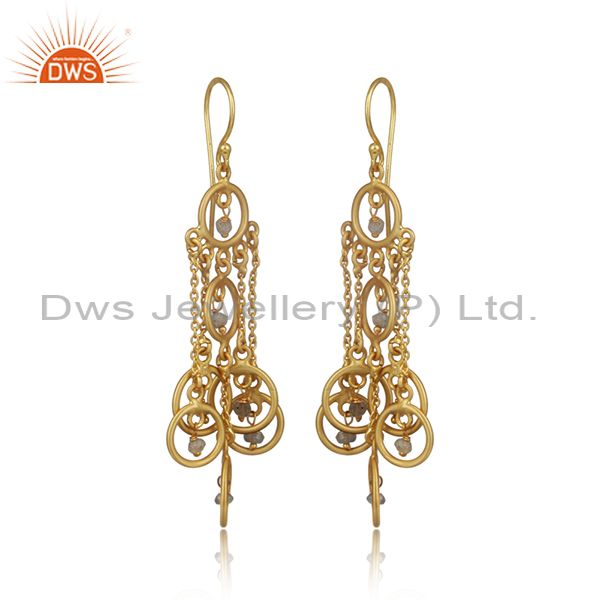 Two Hoops Labradorite Set Sterling Silver Gold Earrings