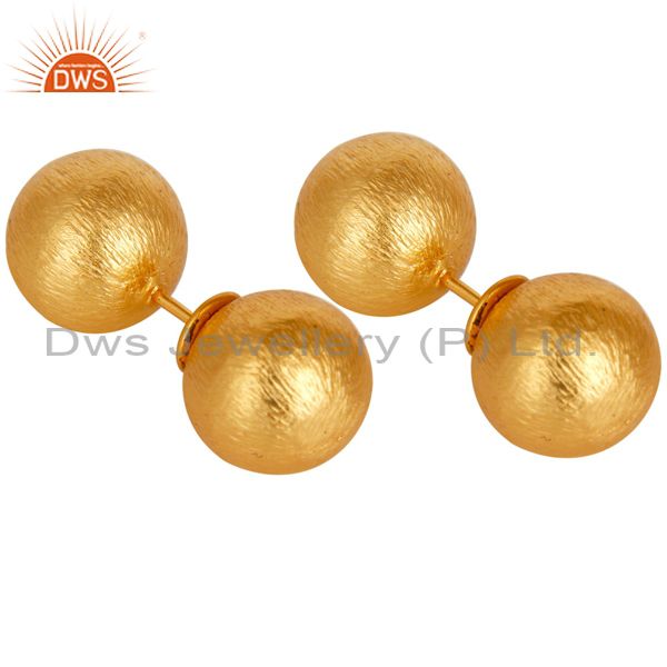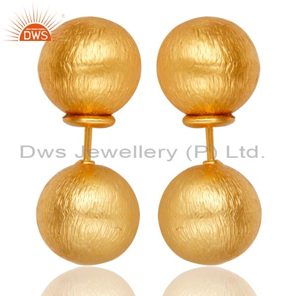 Two Way Ball Round Ball Stud Post 14 K Gold Plated Fashion Stud Gift Earring