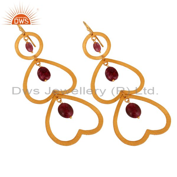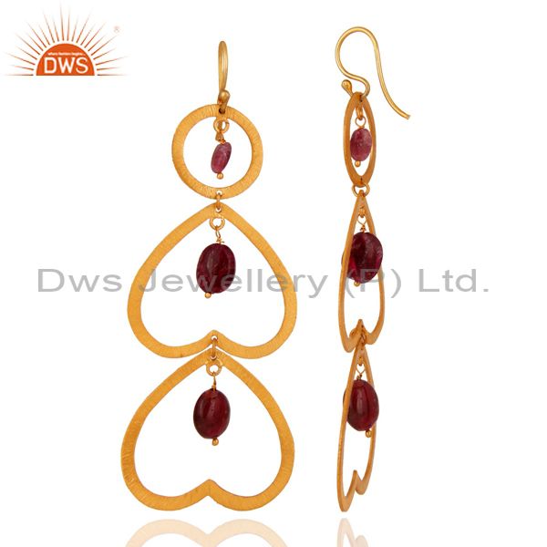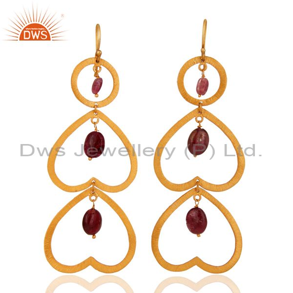 Unique Designer Tourmaline Gemstone Gold Plated Over Sterling Silver 925 Earring