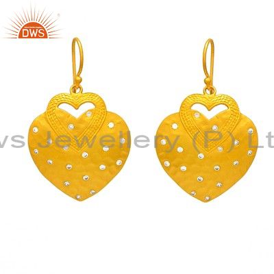 Unique Handmade Gold Plated Sterling Silver Heart Design Earring With Zircon