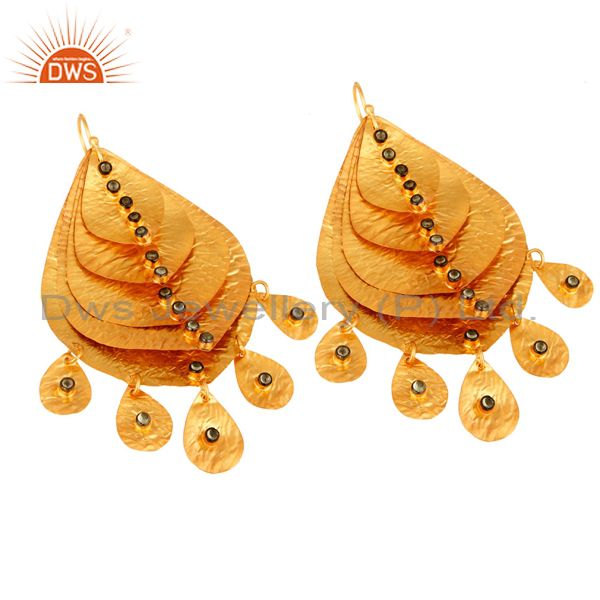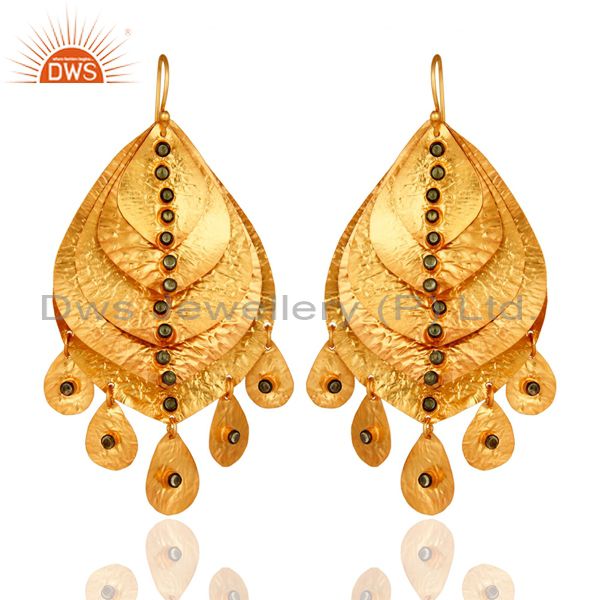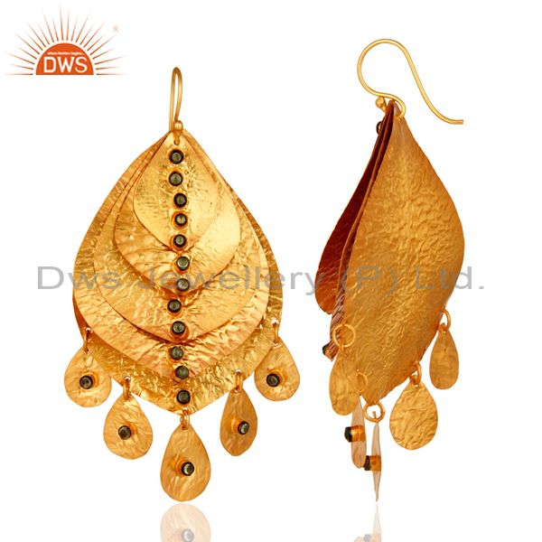 Unique Peridot Gemstone Genuine Sterling Silver Chandelier Earrings - Gold Plate