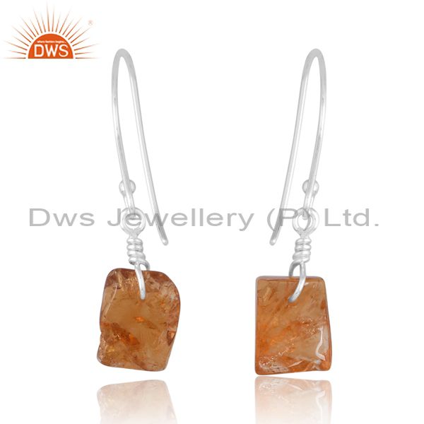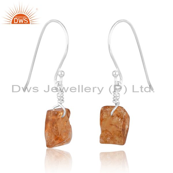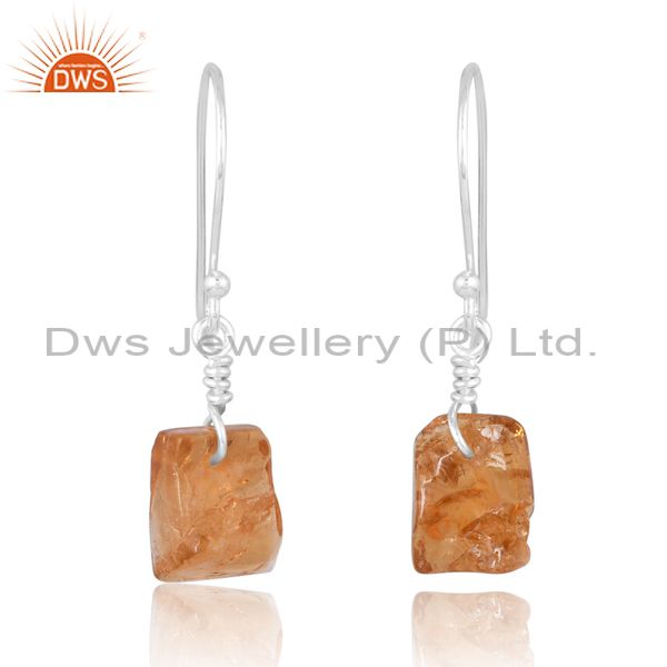 Unshaped Citrine Rough Stone Drop Earring For Girl Valentine