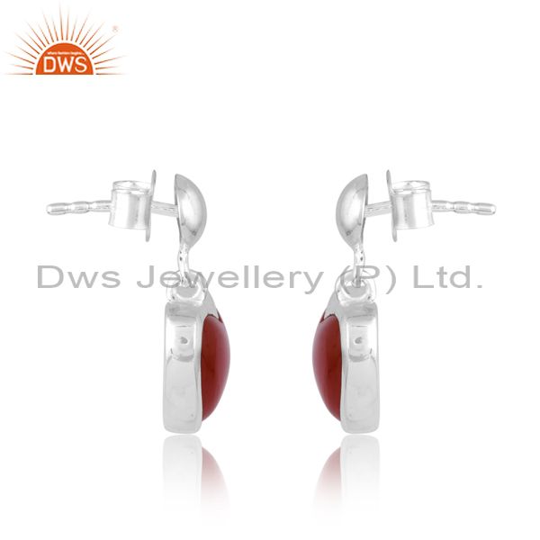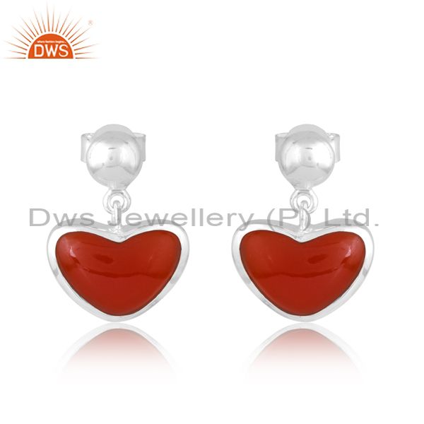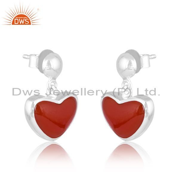 Valentines Special Red Onyx Cabushion Heart Drop Stud
