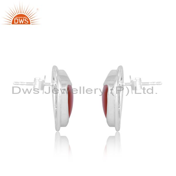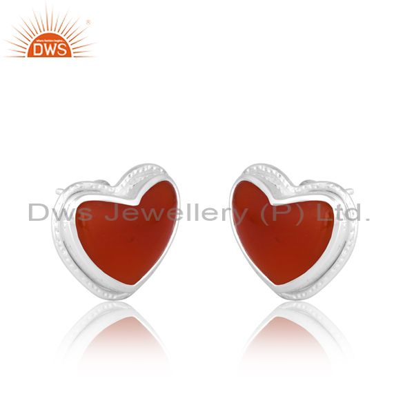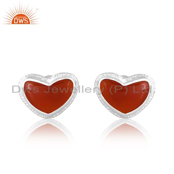 Valentines Special Red Onyx Cabushion Heart Silver Stud