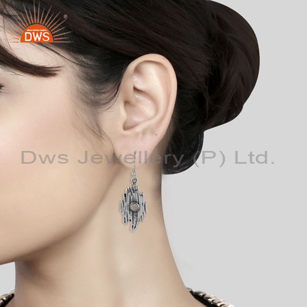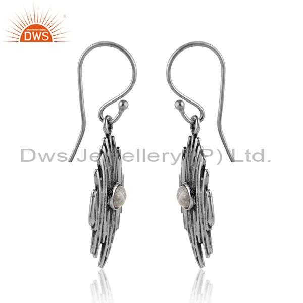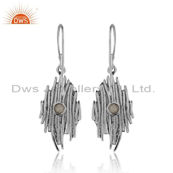 Vibration Design Oxidized 925 Silver Rainbow Moonstone Earring