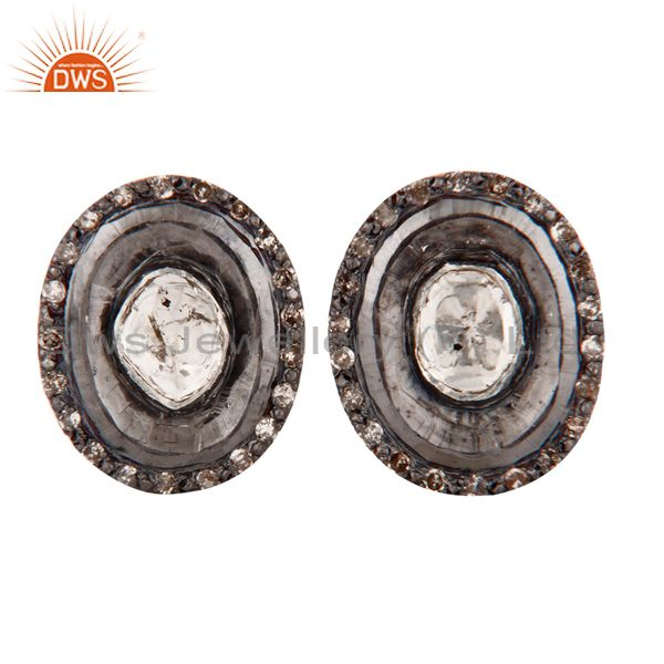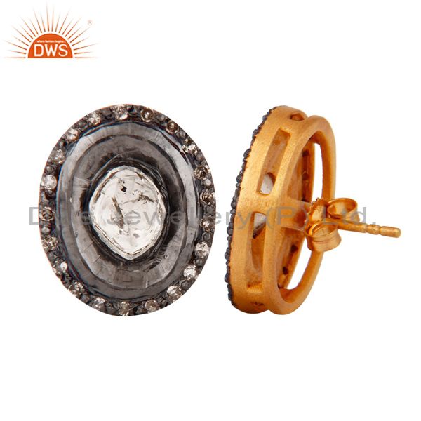 Victorian Inspired Rose & Antique Cut Diamond 18K Yellow Gold Stud Earrings