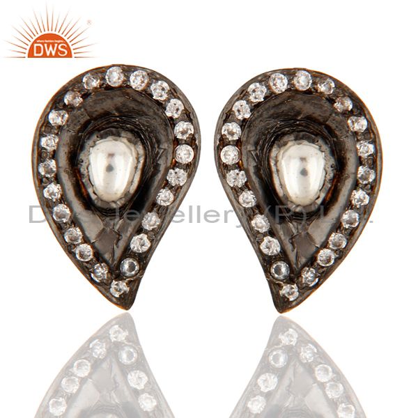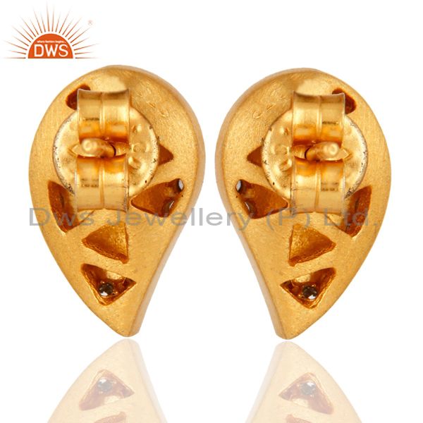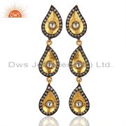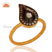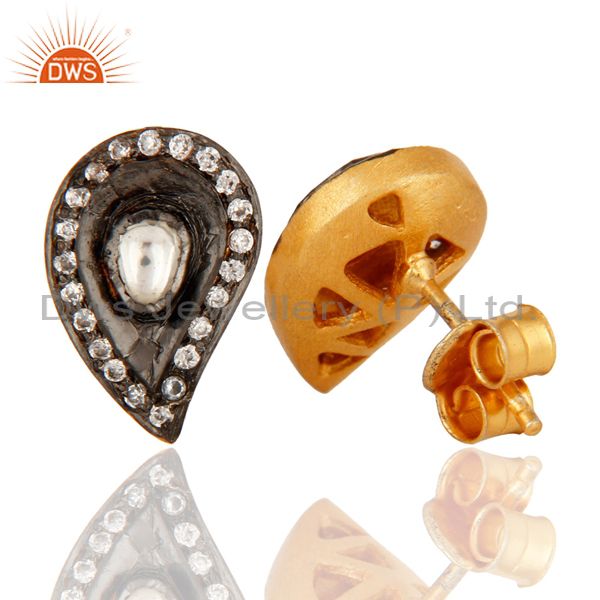 Victorian Rose Cut Crystal Polki Stud Earrings In 18K Gold Over Sterling Silver