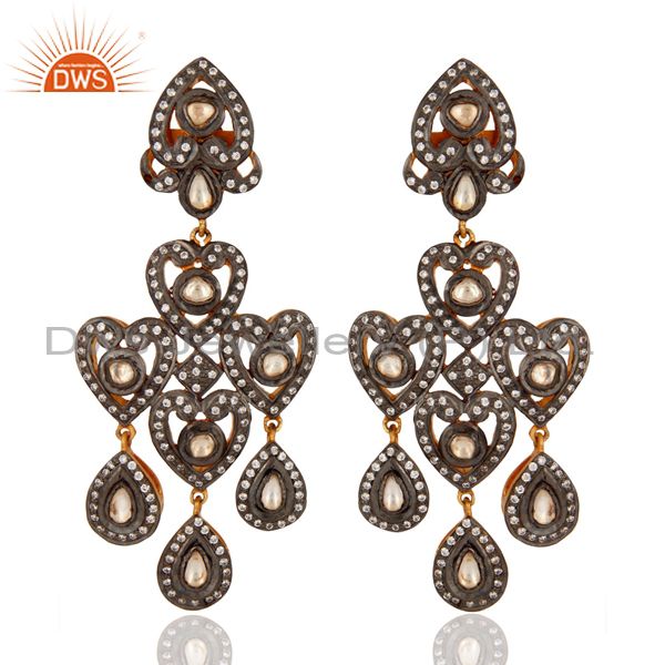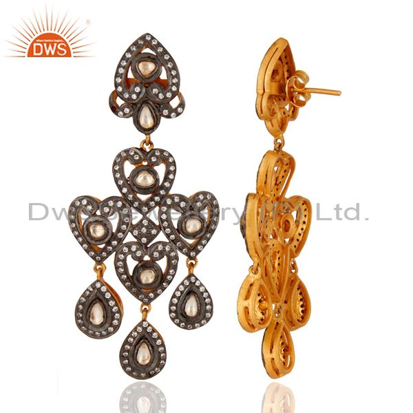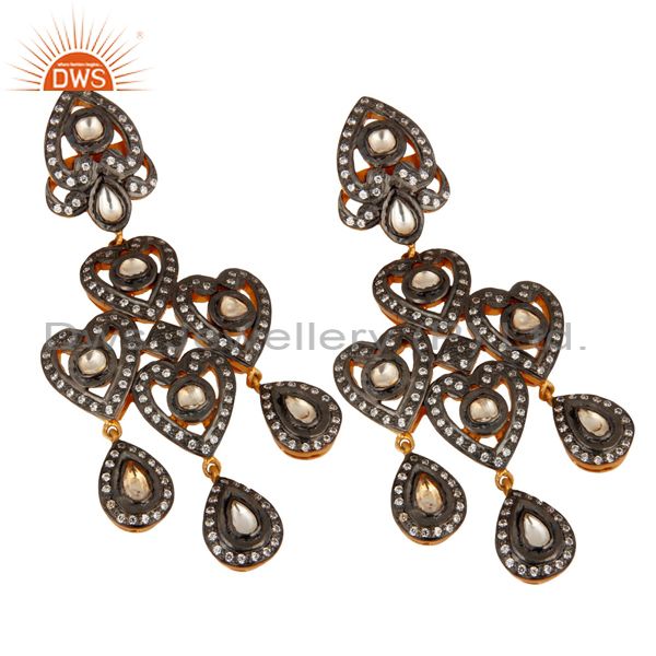 Vintage Look Gold Plated Sterling Silver Bridal Cz Crystal Chandelier Earrings