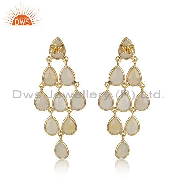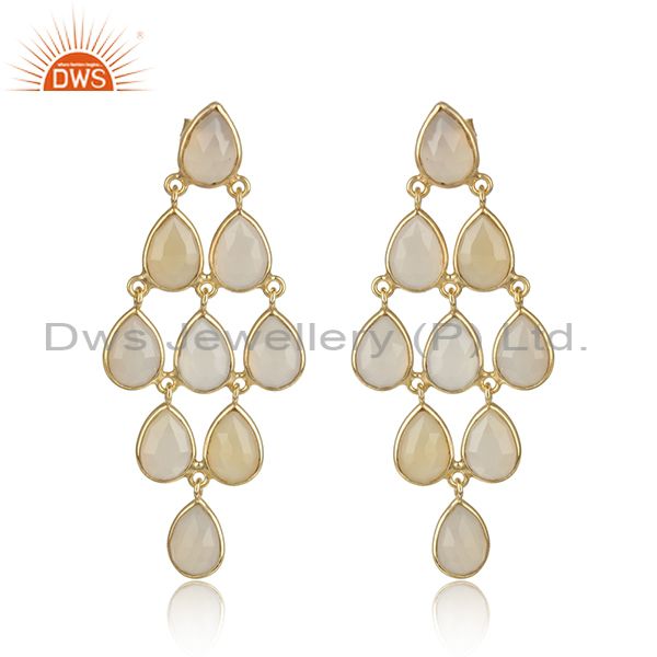 White Chalcedony Gemstone Designer Gold Plated Silver Earrings