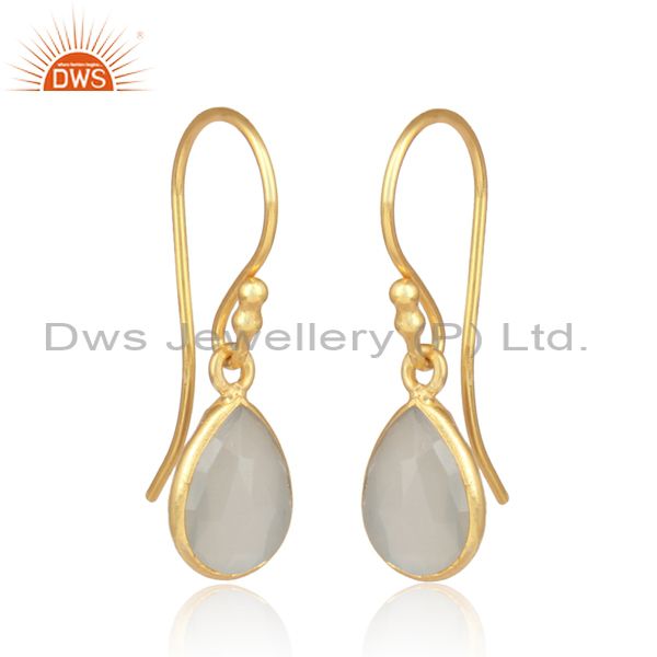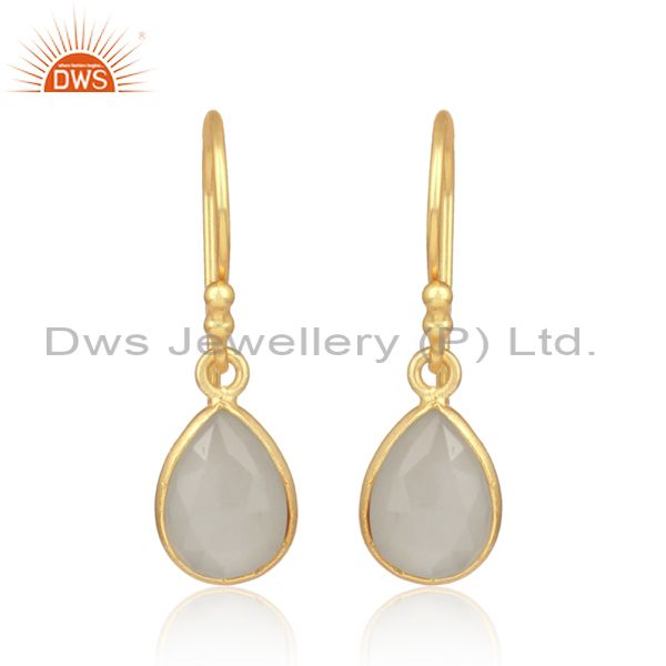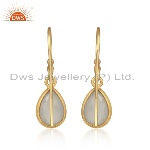White Moon Stone Set Gold On Silver Oval Dangler Earrings