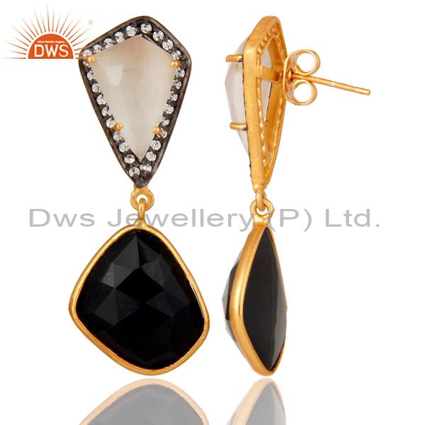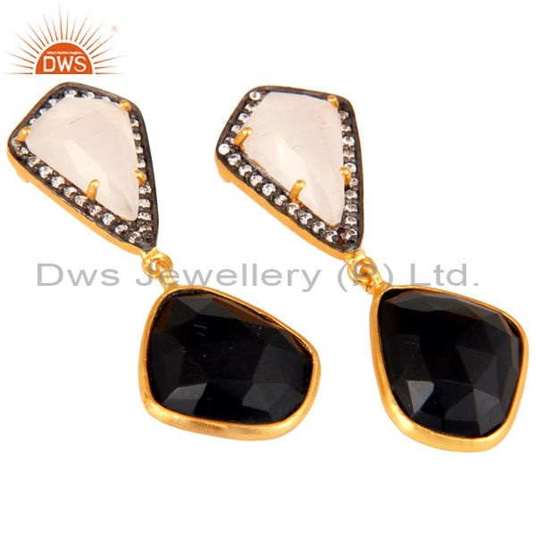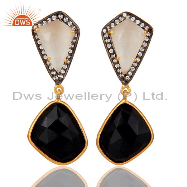 White Moonstone Black Onyx and White CZ 18K Gold Plated Dangler Drop Earring