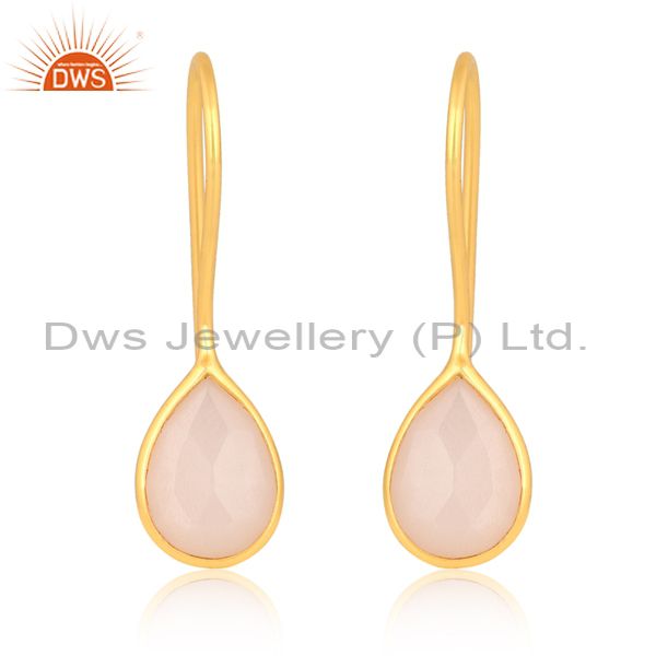 White Moonstone Briolette On Sterling Silver 18K Earring