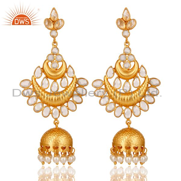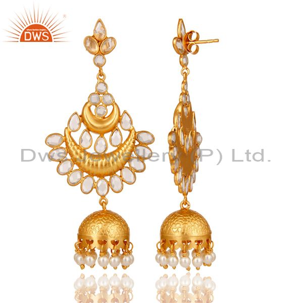 White Pearl and Cubic Zircon 18K Gold Plated Sterling Silver Jhumki Earring