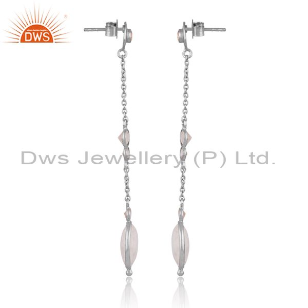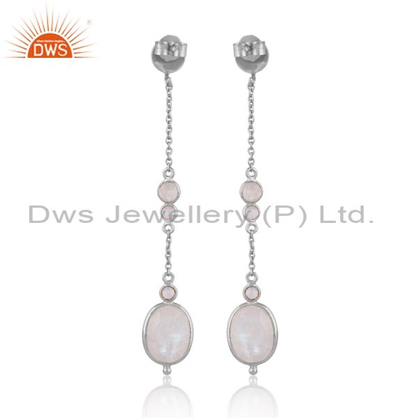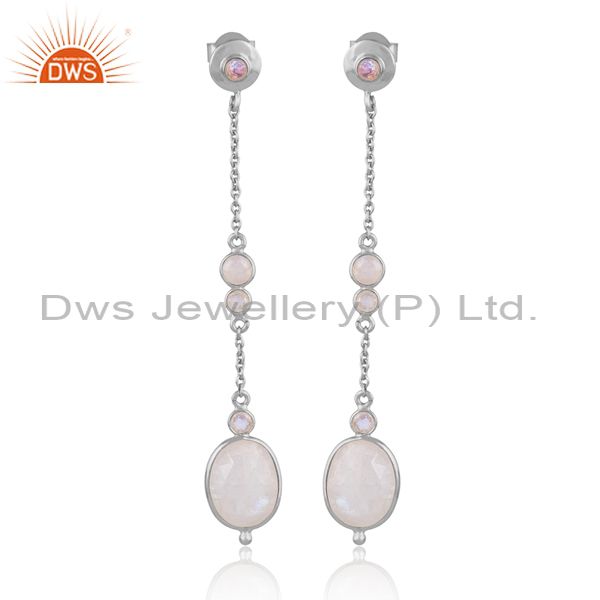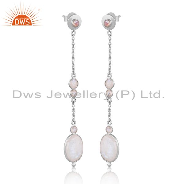 White Rhodium On Silver Rainbow Moon Stone Set Long Earrings