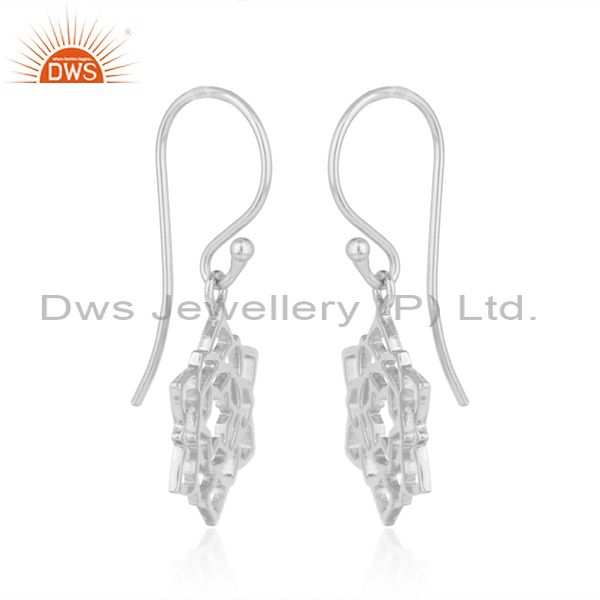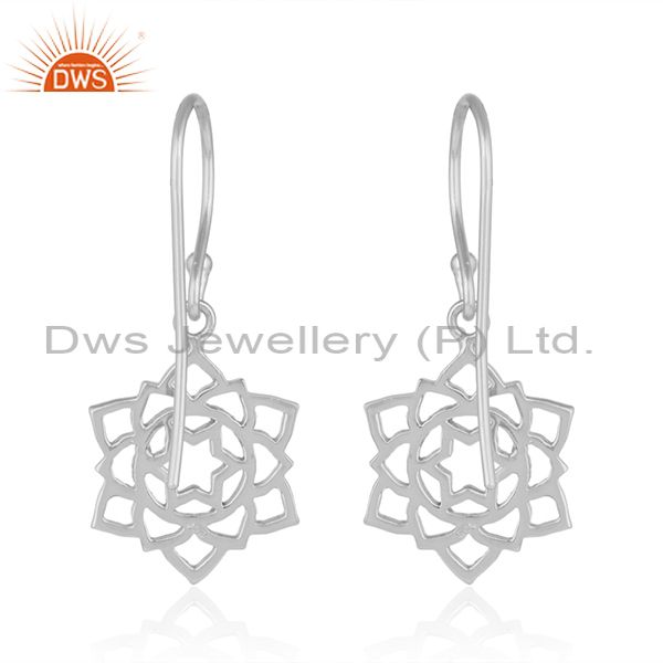 White Rhodium Plated Anahata Chakra Design Plain Silver Earrings