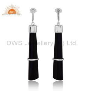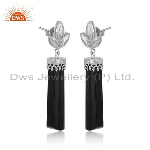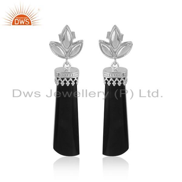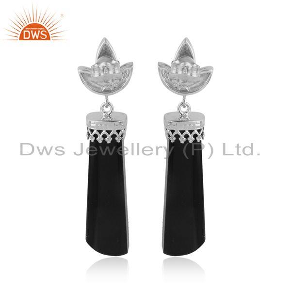White Rhodium Plated Crown Design Black Onyx Gemstone Earrings