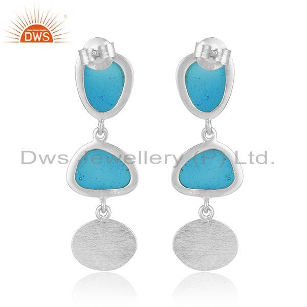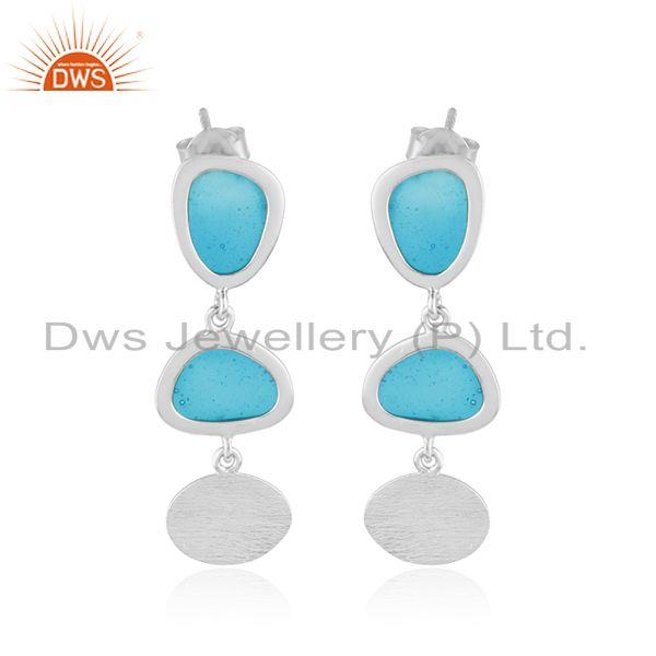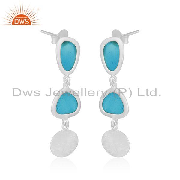 White Rhodium Plated Dangle Designer Enamel Plain Silver Earrings