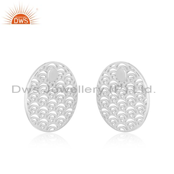 White Rhodium Plated Sterling Silver Unique Girls Stud Earring Jewelry