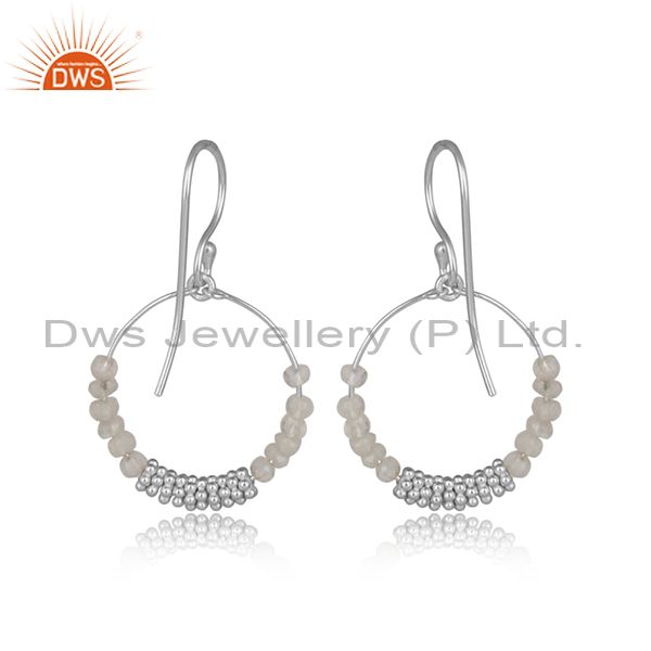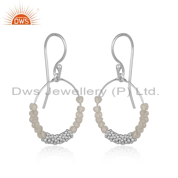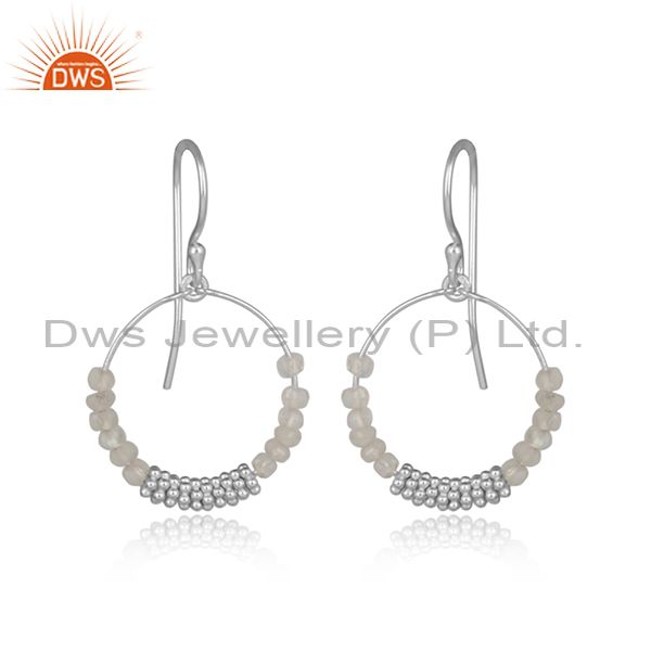 White Sterling Silver Rainbow Moon Stone Set Earrings