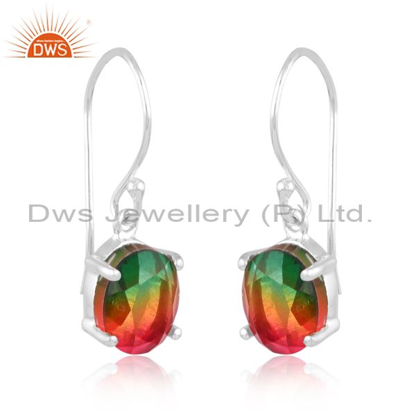 White Sterling Silver Ring With Bio Mystic Doublet Quartz