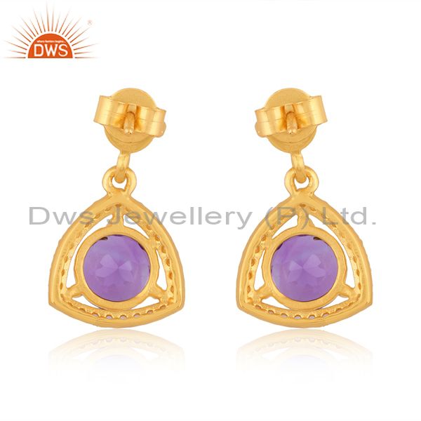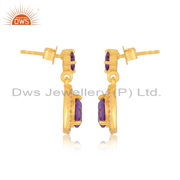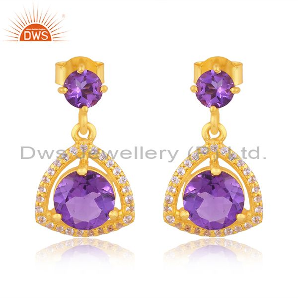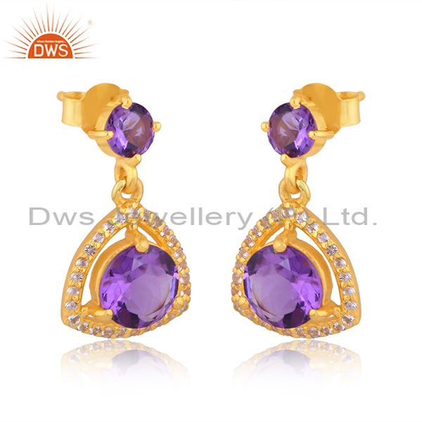 White Topaz Amethyst Gold Plated Silver Dangle Stud Earrings